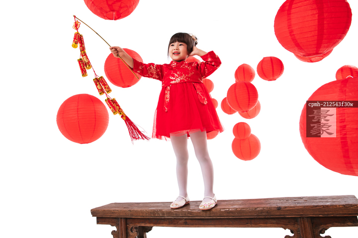图片标题: 新年放鞭炮的快乐小女孩