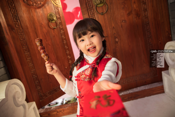 图片标题: 吃糖葫芦的快乐小女孩
