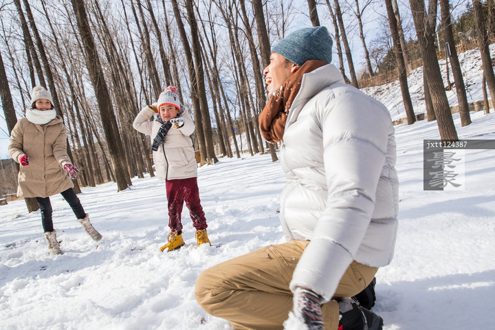 图片标题: 打雪仗的快乐家庭