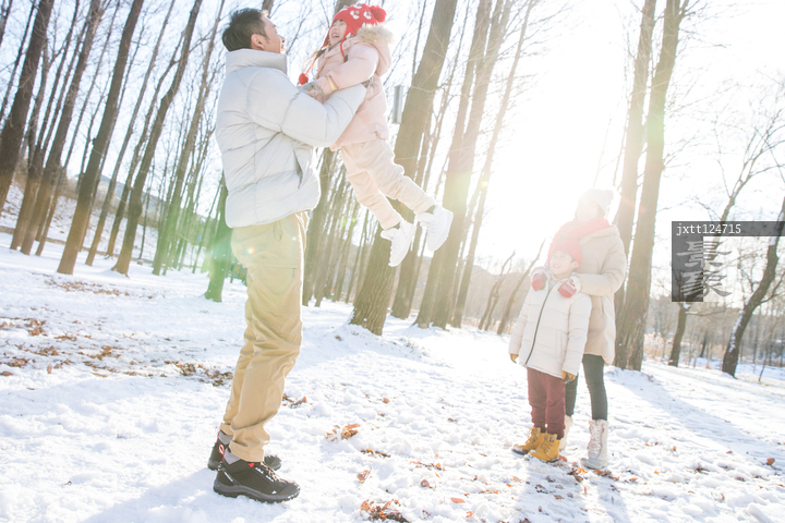 图片标题: 雪地里玩耍的欢乐家庭