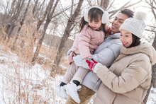 图片标题: 拉着雪橇玩耍的一家人