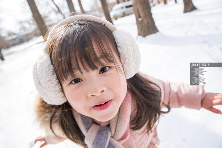 图片标题: 快乐的小女孩在雪地里玩耍
