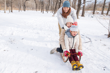 图片标题: 站在雪地上的一家三口