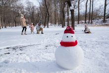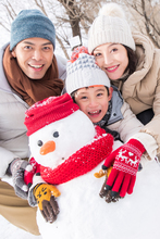 图片标题: 在雪地上玩耍的快乐父子