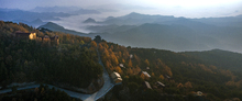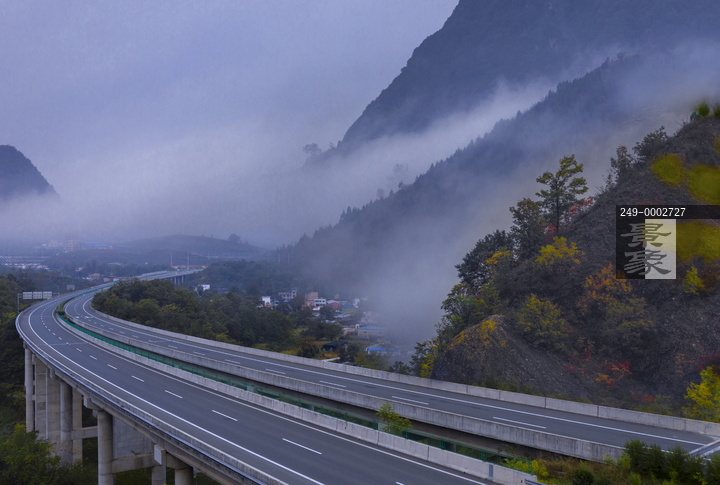 图片标题: 在峡谷云雾中延伸的呼北高速河南三门峡段