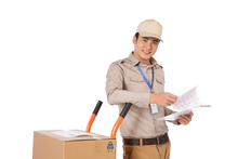 图片标题: 青年物流人员和青年女人