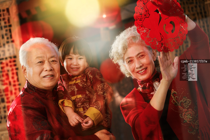图片标题: 祖孙一起贴窗花