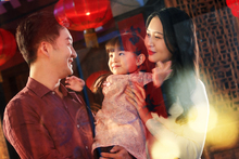 图片标题: 祖孙三人一起贴窗花