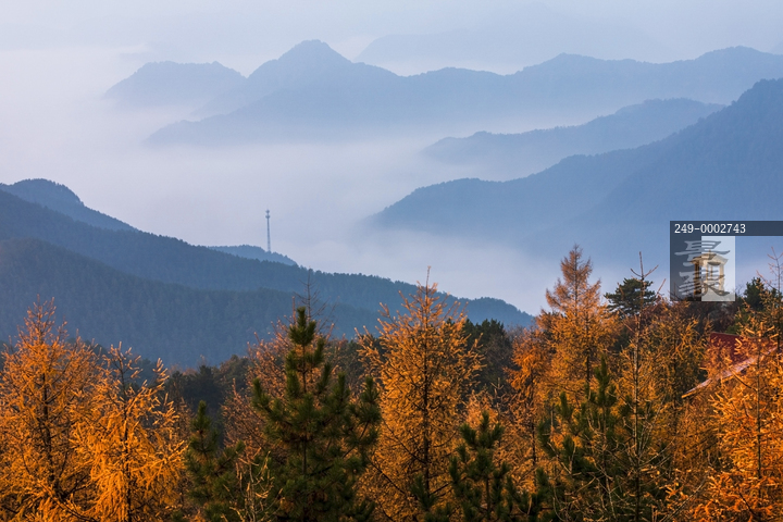 图片标题:     金色的落叶松林与水墨山水相映成画
