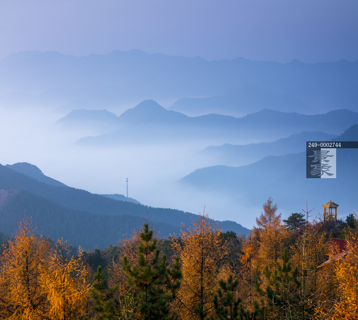 图片标题: 金色的落叶松林与水墨山水相映成画