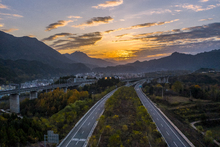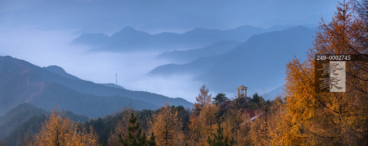 图片标题: 金色的落叶松林与水墨山水相映成画