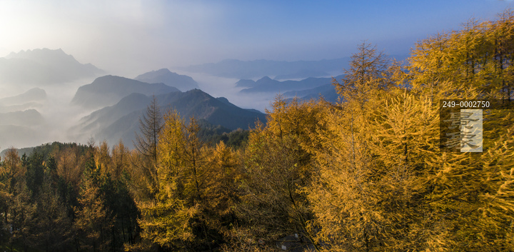 图片标题: 金色的落叶松林与水墨山水相映成画