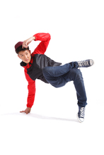 图片标题: 嘻哈风格的年轻人拿着平板电脑