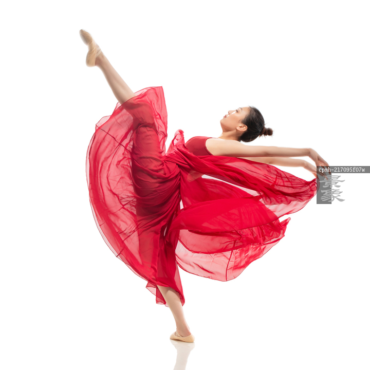 图片标题: 穿红色裙子跳芭蕾舞的青年女人