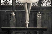图片标题: 拿着雨伞的青年女人跳芭蕾舞