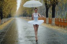 图片标题: 拿着雨伞的青年女人跳芭蕾舞