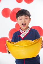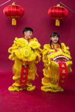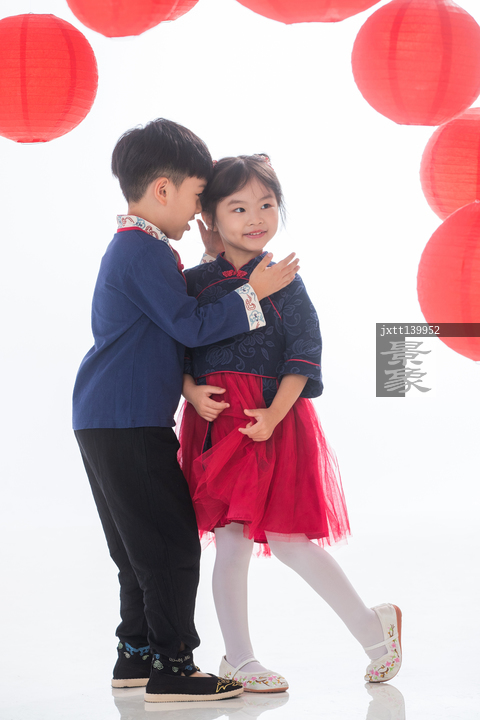 图片标题: 红灯笼下玩耍的快乐男孩和女孩