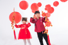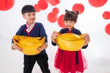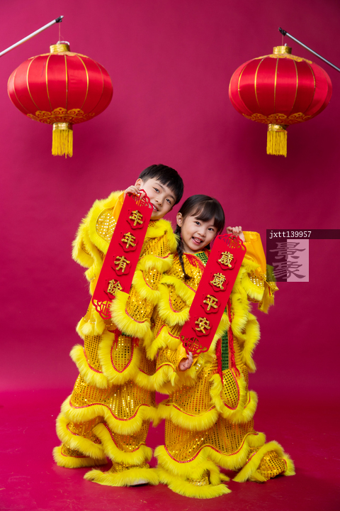 图片标题:     舞狮子的男孩女孩庆祝新年