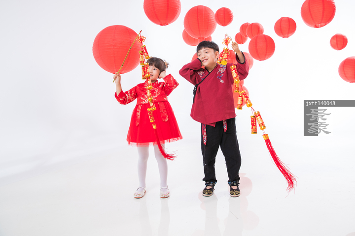 图片标题:     快乐的男孩女孩放鞭炮
