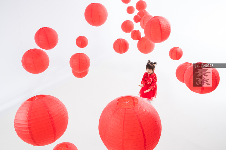 图片标题:     快乐的小女孩在红灯笼下玩耍