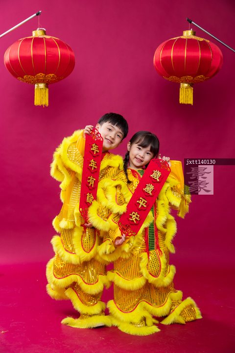 图片标题:     舞狮子的男孩女孩庆祝新年
