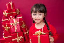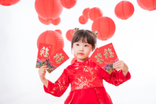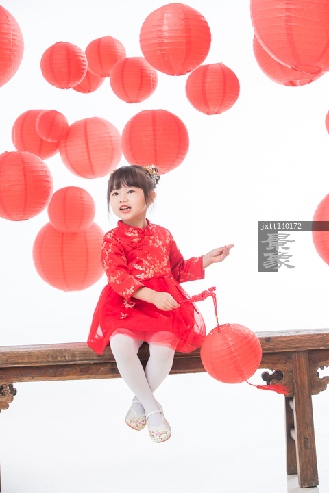 图片标题: 快乐的小女孩拿着红灯笼玩耍
