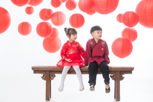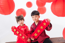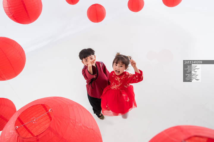 图片标题: 快乐儿童在红灯笼下玩耍