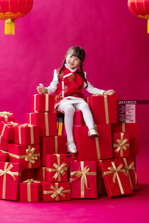 图片标题: 快乐的小女孩和新年礼物