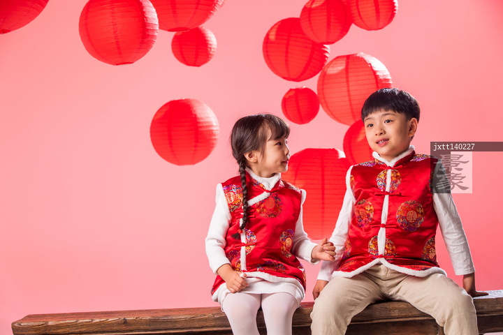 图片标题: 过新年的快乐儿童