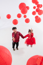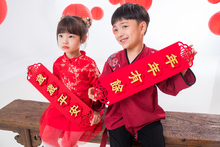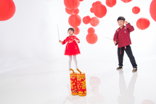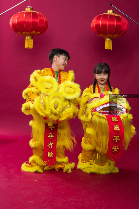 图片标题: 舞狮子的男孩女孩庆祝新年