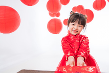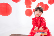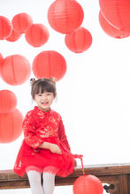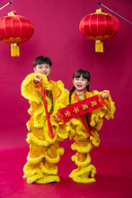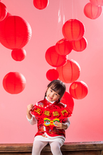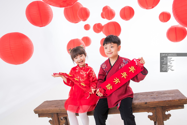 图片标题: 欢乐的男孩女孩拿着春联庆祝新春