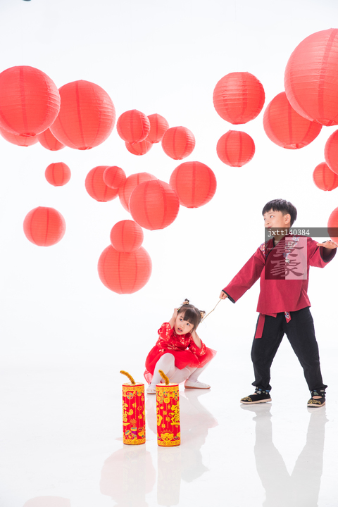 图片标题: 快乐的男孩女孩放鞭炮