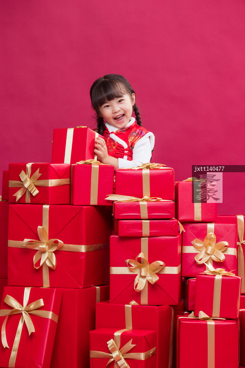 图片标题: 快乐的小女孩和新年礼物