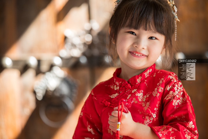 图片标题: 拿着红包的快乐小女孩