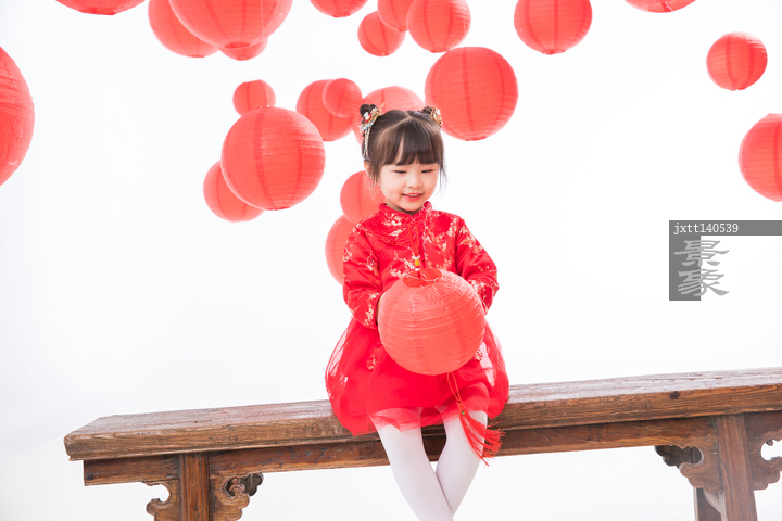 图片标题: 红灯笼下的快乐小女孩