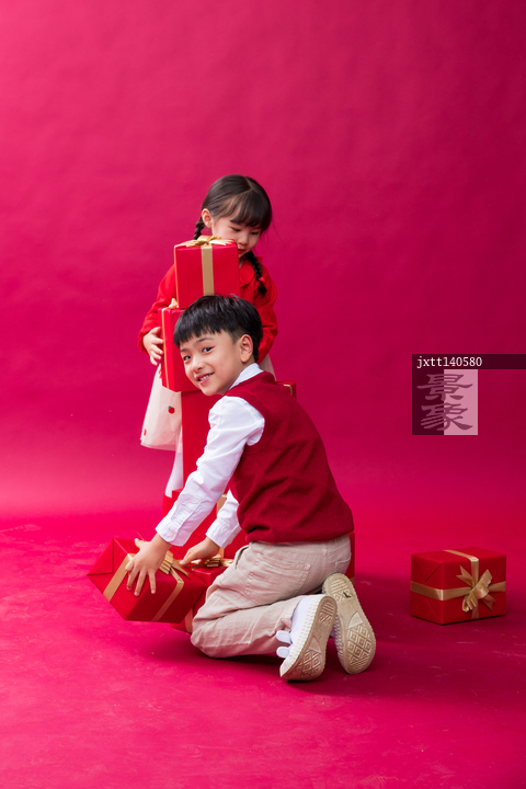图片标题: 快乐儿童拿着新年礼物