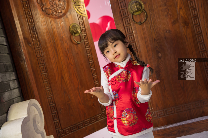 图片标题: 站在门前的可爱小女孩