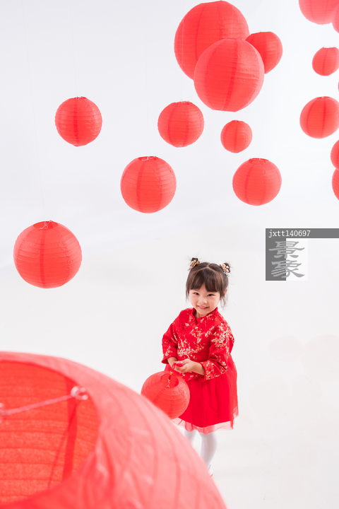图片标题:     快乐的小女孩在红灯笼下玩耍