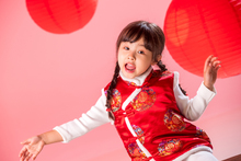 图片标题: 可爱的小女孩拿着红灯笼站在大门口