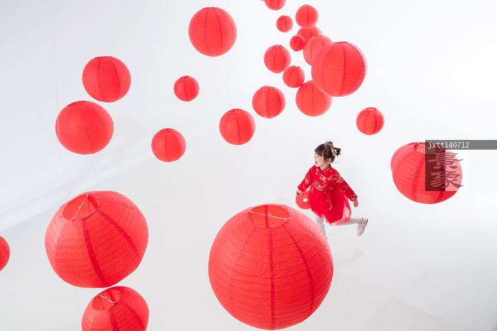 图片标题:     快乐的小女孩在红灯笼下玩耍
