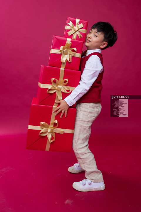 图片标题:     快乐的小男孩拿着新年礼物