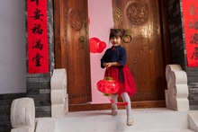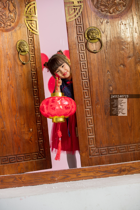 图片标题:     可爱的小女孩拿着红灯笼站在大门口