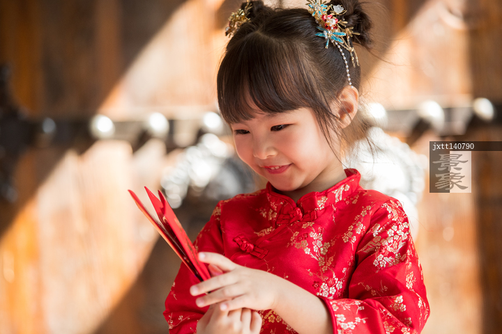 图片标题:     拿着红包的快乐小女孩
