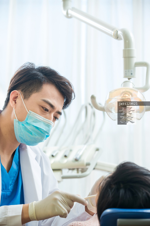 图片标题: 牙医给青年女患者治疗