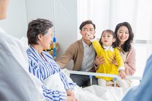 图片标题: 一家三口探望生病的老人