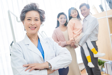 图片标题: 一家三口探望生病的老人