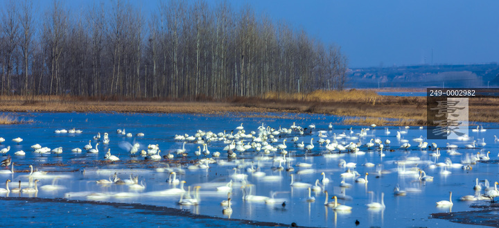 图片标题: 河南三门峡黄河湿地上栖息越冬的白天鹅