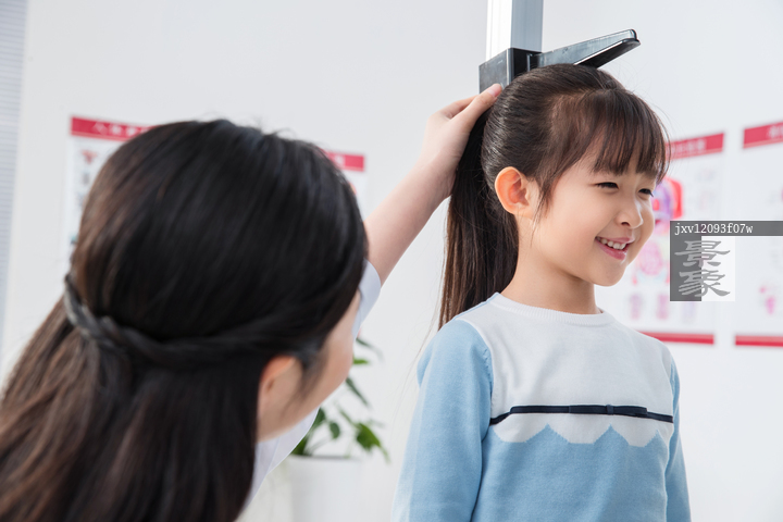 图片标题: 医生给小女孩量身高