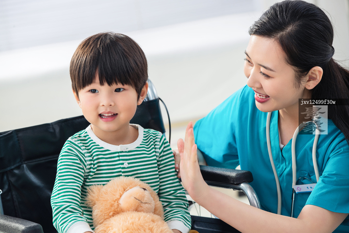 图片标题: 快乐的小男孩和医生