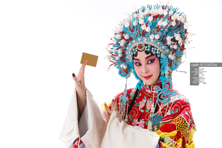 图片标题: 青年戏剧表演者拿着金卡